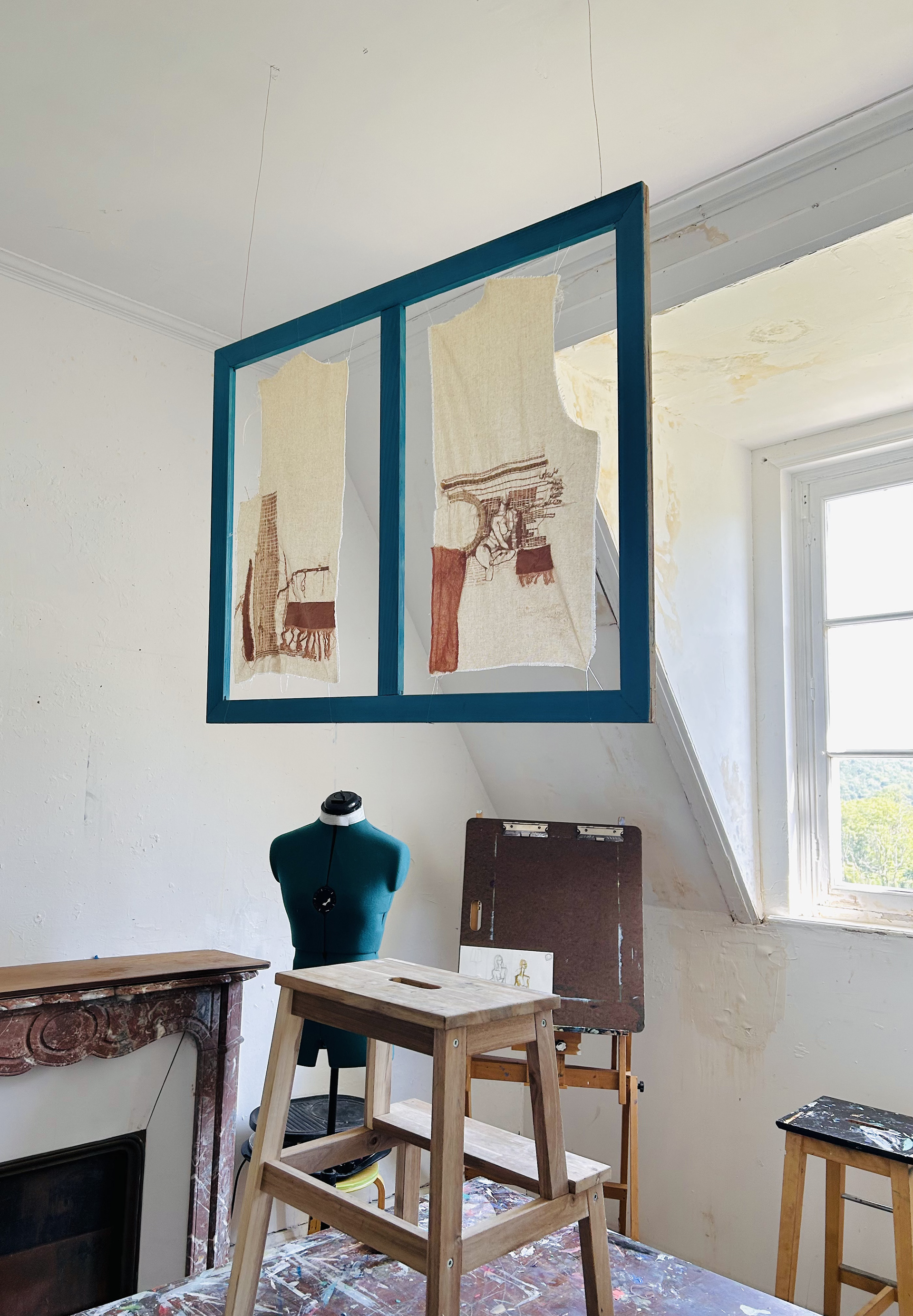A textile installation, inspired by my artistic residency at Chateau Orquevaux in France. The threads and yarns are naturally dyed with the willow tree and plum tree located at the chateau.